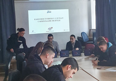 Представници Агенције за безбедност саобраћаја приказали су матурантима, учесницима трибине категорије саобраћајних незгода, од малих са мањом материјалном штетом до великих незгода у којима има повређених и погинулих са великом материјалном штетом, као и како да се понашају у случају да се затекну на месту несреће у улози лица која пружају помоћ. Истакли су да је најважнији први корак и обезбеђивање места незгоде, како не би страдали од осталих учесника у саобраћају, што је честа појава на нашим путевима.