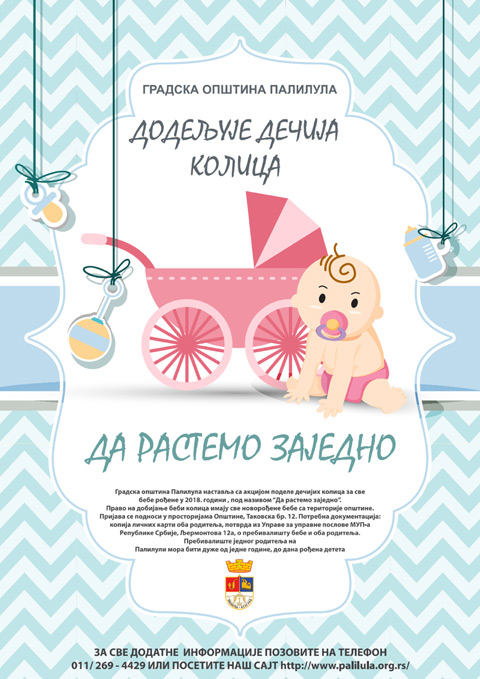 Градска општина Палилула наставља са акцијом поделе дечијих колица за све бебе рођене у 2018. години, под називом "Да растемо заједно".