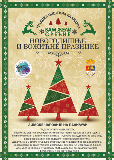Predsednik Gradske opštine Palilula Aleksandar Jovičić pozvao je sve roditelje dece, sa teritorije Palilule, uzrasta od jedne do šest godina da prijave svoju decu radi dobijanja vaučera za dodelu besplatnih novogodišnjih paketića.